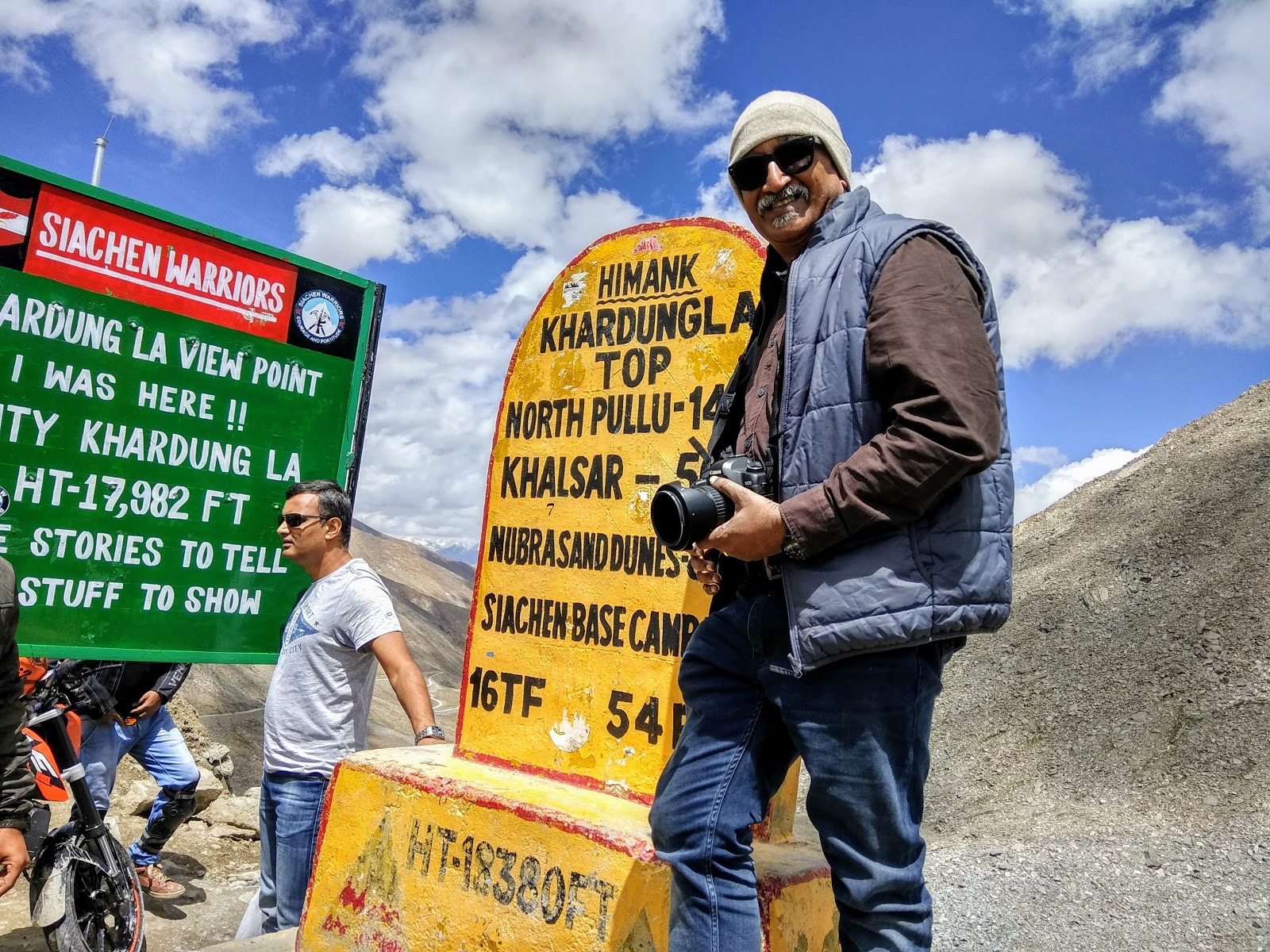 তৃতীয় দিন সকালে আমরা তৈরী হলাম লেহ শহরের বাইরে লাদাখের বাকি দ্রষ্টব্যের দিকে পাড়ি দেবার জন্য। লাদ্দাখের কিছু অঞ্চল যেমন তুরতুক আর সুমোরিরিতে প্রবেশের জন্য আলাদা করে অনুমতি পত্র নিতে লাগে কারন, এর একটা হল পাকিস্তানের দিকের ভারত অন্যটা চীনের দিকের সীমান্ত। তো লেহ থেকে বেরোবার সময়ে এই অনুমতি পত্র গুলো নিয়ে, আর একটা অক্সিজেন সিলিন্ডার নিয়ে আমরা পাড়ি দিলাম একটা জাইলো গাড়িতে। গাড়ির ড্রাইভার একটা বাচ্ছা ছেলে, বাইশ তেইশ বছর বয়স হবে কিন্তু খুব ধৈর্য আর ক্রমশ বুঝেছিলাম খুবই পাকা ড্রাইভার। আমরা প্রথমেই এগোলাম খারদুংলা পাসের দিকে। তিব্বতী ভাষায় ‘লা’ কথাটার মানেই পাস। কিন্তু সাধারন লোকেরা সেটা বোঝে না, সকলেই খারদুংলা পাসই বলে। লাদ্দাখে বা সমগ্র ভারতেও এরকম একটা ধারনা আছে যে এখানেই পৃথিবীর সর্বোচ্চ মোটোরেবল রাস্তা আছে। কিন্তু পরে খোঁজ করে জানতে পারলাম যে ভারতের উত্তরাখন্ডের মানা গ্রামে রাস্তার উচ্চতা এর চেয়েও বেশী এমন কি লাদ্দাখেই নাথুলা পাসের উচ্চতা খারদুংলার চেয়ে বেশী এবং সেখানেও মোটোরেবল রাস্তা আছে। যাই হোক লেহ থেকে মাত্র ৪০ কিমি দূরে খারদুংলা পাসে যখন গিয়ে পৌঁছলাম তখন রোদ্দুরের তেজে চোখ খুলে তাকানো যাচ্ছেনা। চার পাশে বরফে ঢাকা পাহাড় থেকেও সূর্যের আলোর তেজ ঠিকরে উঠছে। সে এক অদ্ভুত অনুভুতি! চিরকাল সমতলে কাটানো মানুষ আমি কোনো জায়গা যে শুধু বরফে ঢাকা পাহাড় হতে পারে তা শুধু সিনেমা বা টিভির পর্দাতেই দেখেছি। বেশ কিছু অল্প বয়সী অ্যাডভেঞ্চার বিলাসী ছেলেমেয়ে মোটোর বাইকে চড়ে বেড়াতে এসেছে। তথাকথিত সর্বোচ্চ মোটোরেবল রাস্তায় বাইক চালিয়ে অন্যতম পাহাড়ের চুড়োয় পৌঁছে তাদের কী সে দাপাদাপি। এদিকে প্রচন্ড রোদ্দুরে যেমন চামড়া পুড়ে যাবার অনুভুতি হচ্ছে অন্যদিকে তেমনি ঠান্ডা বরফ ছোঁয়া হাওয়া হাড় হিম করে দিচ্ছে। এই অবস্থায় দেখলাম সেখানে ভারতীয় সেনার লোকেরাই টুরিস্টদের জায়গাটা সম্বন্ধে যাবতীয় তথ্য জানাচ্ছে। তাদেরই তত্ত্বাবধানে একটা মেডিকাল সেন্টারও আছে যেখানে টূরিস্টদের কম অক্সিজেনের জন্য শারীরিক অসুবিধে হলে পরিচর্‍্যা করার ব্যবস্থা আছে। যাই হোক আমরা দুজনে সকলের মতই ওখানে কিছু ছবি তুলে এগিয়ে পড়লাম। লেহ কে পেছনে ফেলে খারদুংলার পাশ দিয়ে ঠিক তার পেছনে গিয়ে পড়তেই দৃশ্যটা একটু পালটে গেল। ওদিকটা সূর্যের আলোয় সব কিছু যেমন চোখে খটখটে লাগছিল, পাহাড়টা বেড় দিয়ে পেছনে চলে আসতেই সূর্যের আলোটা এদিকটা নরম হয়ে গেল আর পাহাড়ের নিজস্ব রঙ গুলো ফুটে উঠল। এখান থেকে আমরা প্রায় ৬ ঘন্টা গাড়ীতে যাবার পর আমাদের গন্তব্যে পৌঁছবো। এখান থেকে আমাদের সঙ্গী হল লাদাখের অন্যতম নদী শ্যোক। শ্যোক নদীর উৎস হল সিয়াচীনের একটা অঙ্গ রীমো গ্লে