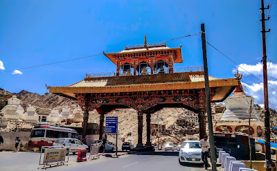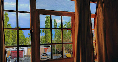 পরদিন সকাল থেকে ঘোরাঘুরির প্ল্যান ছিল। সকালে উঠে দেবাশীষ একটা বড় ফ্লাস্ক ভর্তি করে ফুটন্ত গরম জল আনিয়ে নিল। তাইতে বাড়ি থেকে নিয়ে যাওয়া দারচিনি দেওয়া দার্জিলিং চা পাতা দিয়ে চা করে, সামনের পাহাড়ের চুড়োয় রোদের রঙ লাল থেকে, কমলা থেকে হলুদ হয়ে ওঠা দেখতে দেখতে আয়েস করে দু জনে দু কাপ করে চা খাওয়া হলো। এরপর গরম জলে স্নান সেরে আমরা হোটেলের খাবার ঘরে প্রাতঃরাশ সারতে গেলাম। পাঁচ তারা হোটেলের কিছু কিছু ব্যাবস্থা আজকাল তিনতারা হোটেল গুলোতেও পাওয়া যায়, যেমন ধরুন কোথাও সকালের প্রাতঃরাশ, কোথাও ঘরে ইলেক্ট্রিক কেটল ইত্যাদি! এখানে ঘরে ইলেক্ট্রিক কেটল দেওয়া ছিল না কিন্তু ঘার ভাড়ায় প্রাতঃরাশ এবং রাতের খাওয়া ধরা ছিল। তবে হ্যাঁ খাবারে পদ গুলোতে তেমন রকমারি কিছু ছিলনা। সকালে আলুর পরোটা, চিঁড়ের পোলাও, পাউরুটির টোস্ট আর কর্নফ্লেক্স দুধ, আবার রাতের খাবারে রাজমা, বা ছোলা, পনীরের তরকারী, একটা পাঁচ মিশেলী তরকারি আর রুটি বা ভাত। এখানে একটা কথা জানলাম যে লাদাখ পুরোপুরি বৌদ্ধ ধর্মাবলম্বি বলে সব জায়গায় আমিষ রান্না পাওয়া যায় না। এখানেও আমিষ কমই ছিল একটা পদ একটু দূরে ব্রাত্যের মত সরিয়ে রাখা থাকত, হয় ডিমের ডালনা নয় মুরগীর ঝোল। এখানে আরো একটা জিনিস নজরে এল...সেটা হোলো হোটেলের কর্মচারীরা কেউ লাদাখী নয় বরং সুদুর উত্তরপ্রদেশ থেকে এসেছে, যার ফলে রান্নাবান্না সবই উত্তর ভারতীয়, একটা পদও লাদাখী শৈলীর নয়। ফলে বেড়াতে আসা লোকগুলোর খাওয়া দাওয়া বা ভাষার দিক দিয়ে কোনো অসুবিধেই হয়না। পুরো লাদাখেই ব্যাবস্থাটা এমনই তাই লাদাখী রান্নার আস্বাদ আমরা একেবারেই কোথাও পেলামনা।